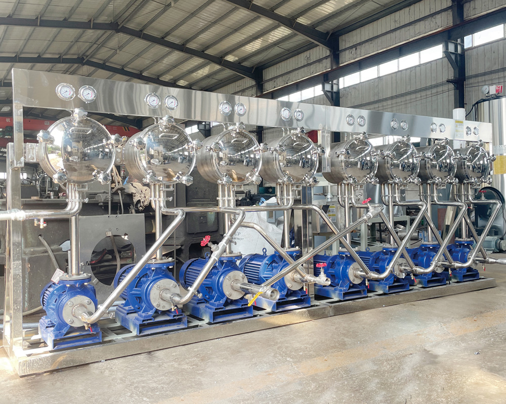 淀粉旋流器:过滤淀粉里的细微杂质。采用离心沉降原理。当分离的两相混合液以一定压力从旋流器周边切向进入旋流器内后,产生强烈的三维椭圆型强旋转剪切湍流运动。由于粗颗粒与细颗粒之间存在粒度差,其受到离心力、向心浮力、流体曳力等大小不同,受离心沉降作用,大部分粗颗粒经旋流器底流口排出,而大部分细颗粒由溢流管排出,从而达到分离分级目的。